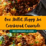 This One Skillet Sloppy Joe Cornbread Casserole combines a rich, tangy beef filling with a fluffy, cheesy cornbread topping baked to golden perfection. It is a hearty, comforting meal made conveniently in a single pan.