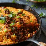 I love how this One Skillet Sloppy Joe Cornbread Casserole brings together sweet, savory, and cheesy flavors in one hearty pan. I get the rich, tangy sloppy joe base topped with fluffy, golden cornbread all baked together in a single skillet. It’s the kind of comforting, homestyle meal I turn to when I want something filling, simple, and family-friendly.