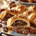 Flaky crescent rolls filled with a rich, buttery pecan pie filling — a quick and easy twist on the classic dessert, perfect for holidays or last-minute sweet cravings.