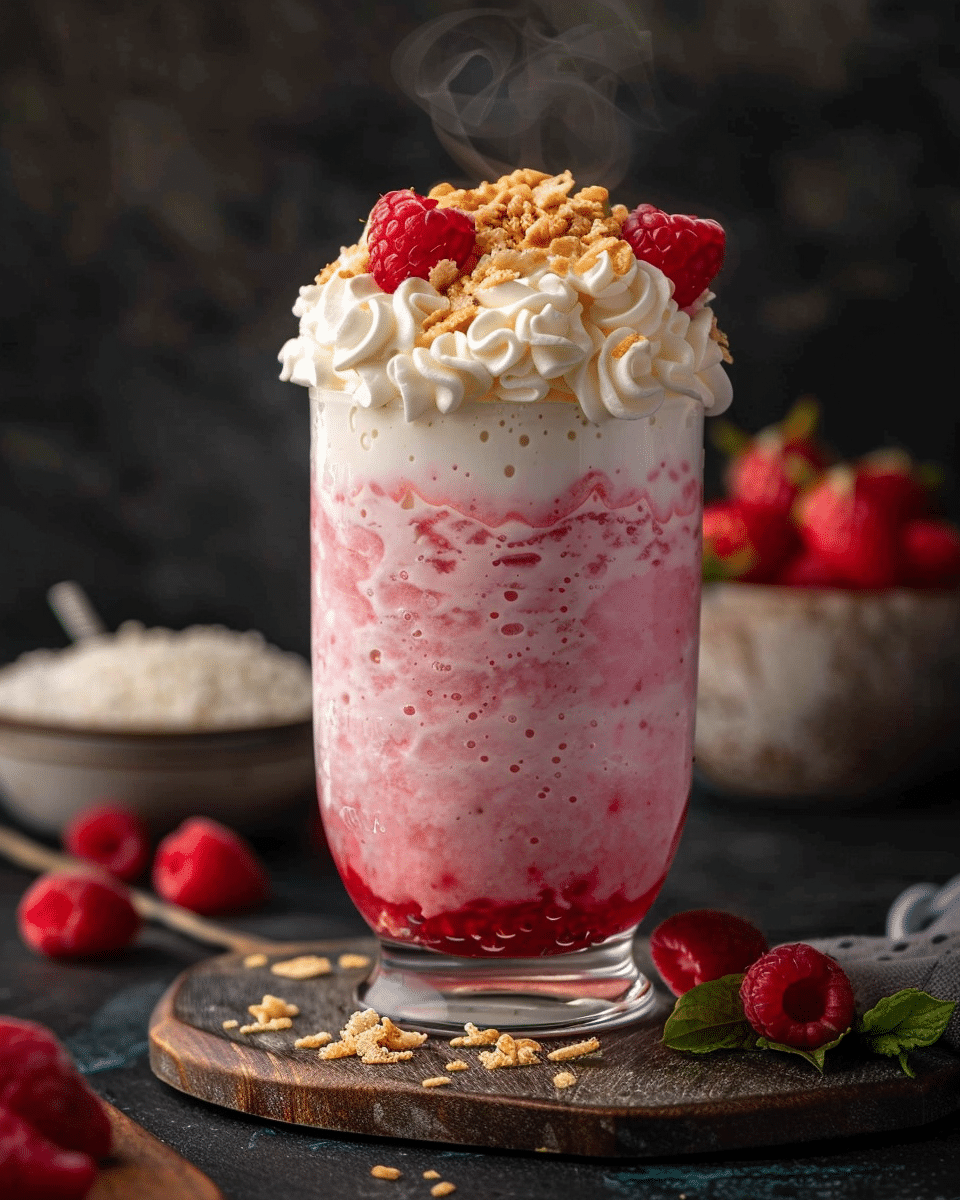 A bright, tropical frozen mocktail made with raspberries, pineapple juice, and creamy coconut. This refreshing blended drink is smooth, fruity, and perfect for warm days or a quick island-style treat.