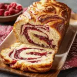 A rich and buttery brioche loaf with vibrant raspberry swirls throughout, this Raspberry Swirl Brioche Loaf is soft, slightly sweet, and perfect for breakfast, brunch, or a teatime treat. The fresh raspberry compote creates gorgeous natural marbling, making each slice both beautiful and delicious.