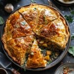 Samosa Pie with Spiced Chicken and Potato Filling a fusion twist on a beloved Indian snack, this samosa pie brings the bold, warming flavors of traditional samosas into a hearty, shareable dish. I layer a rich filling of spiced ground chicken, potatoes, peas, and fresh cilantro under a golden puff pastry crust, creating a comforting and flavor-packed meal that’s both satisfying and simple to prepare.