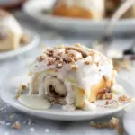 Soft, fluffy cinnamon rolls filled with gooey chocolate, melty marshmallows, brown sugar cinnamon, and buttery graham cracker crumble, topped with vanilla glaze and chocolate drizzle for the ultimate s’mores-inspired treat.