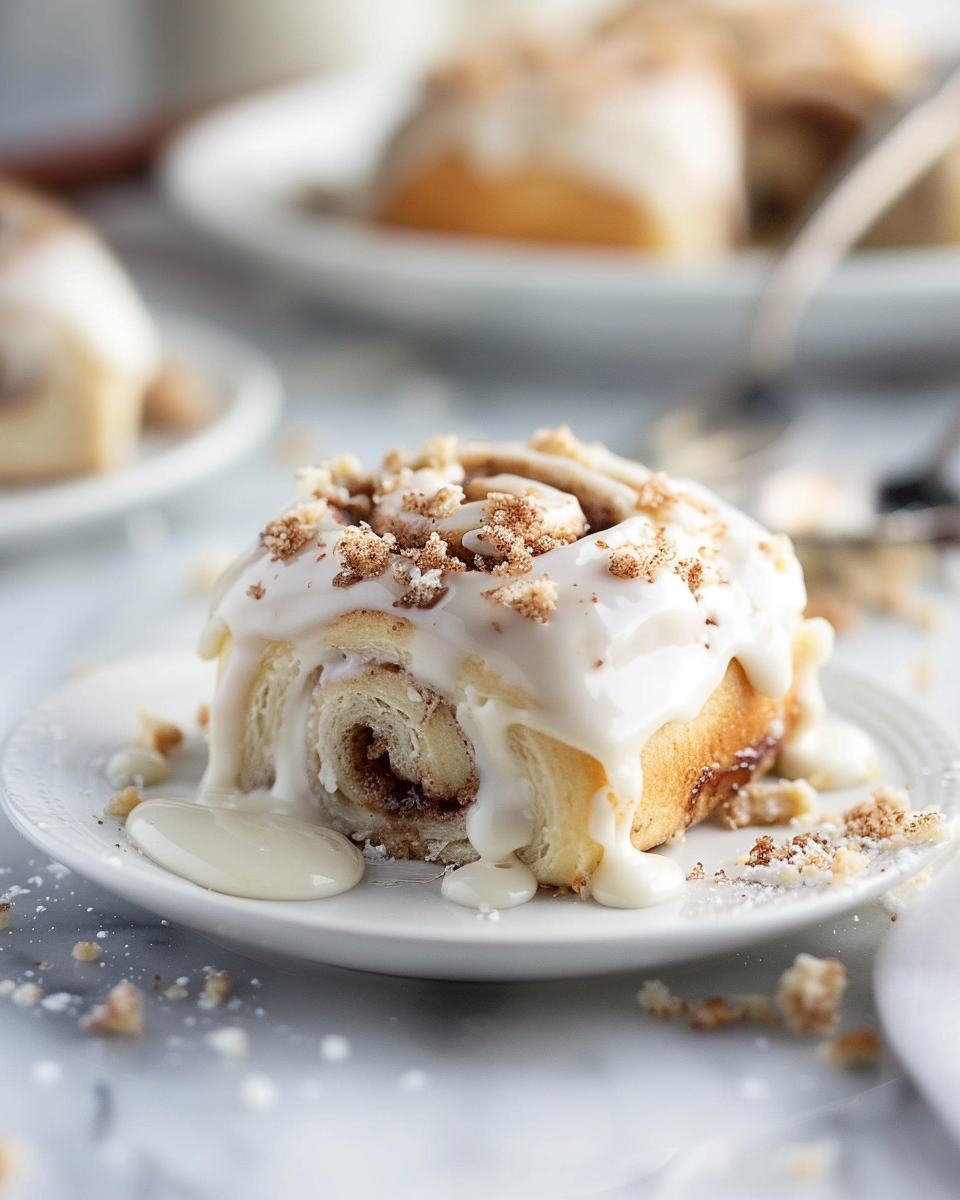 When I reheat, I warm individual rolls in the microwave for about 15 to 20 seconds until soft and gooey again. If I am reheating several at once, I cover them with foil and warm them in a 300°F oven for about 10 minutes.