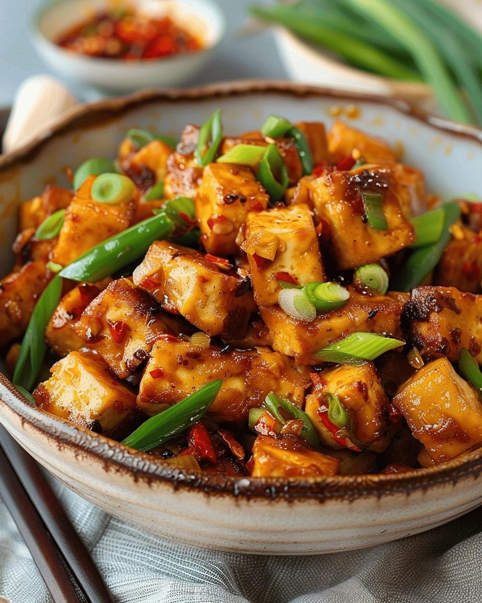 This Spicy Szechuan Tofu Stir-Fry is a fiery, plant-based dish featuring crispy tofu, colorful vegetables, and a bold homemade Szechuan sauce. It’s quick, satisfying, and perfect for a weeknight meal.