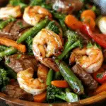 This steak and shrimp stir-fry is a bold, colorful, and flavor-packed dish that brings the sizzle of a restaurant-style stir-fry right into my kitchen. With juicy seared steak, tender shrimp, and crisp vegetables tossed in a savory, umami-rich sauce, it’s my go-to when I want something fast, hearty, and satisfying.