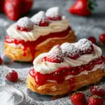 I love making these strawberry eclairs when I want something elegant yet homemade. Light and airy choux pastry is filled with silky vanilla cream blended with fresh strawberries, then topped with a glossy strawberry glaze and more berries. I find them perfect for brunch, celebrations, or whenever I want to impress with a bakery-style dessert made from scratch.