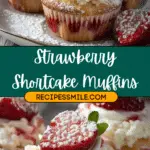 Soft and fluffy Strawberry Shortcake Muffins with fresh strawberries and a sweet crumb topping. Perfect for breakfast, brunch, or a snack, these handheld treats bring the classic dessert flavors into a portable form.