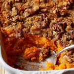 Creamy mashed sweet potatoes topped with a buttery, brown sugar-pecan crumble — this sweet potato casserole is a classic holiday favorite that blends sweet, spiced, and crunchy elements into one irresistible dish.