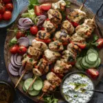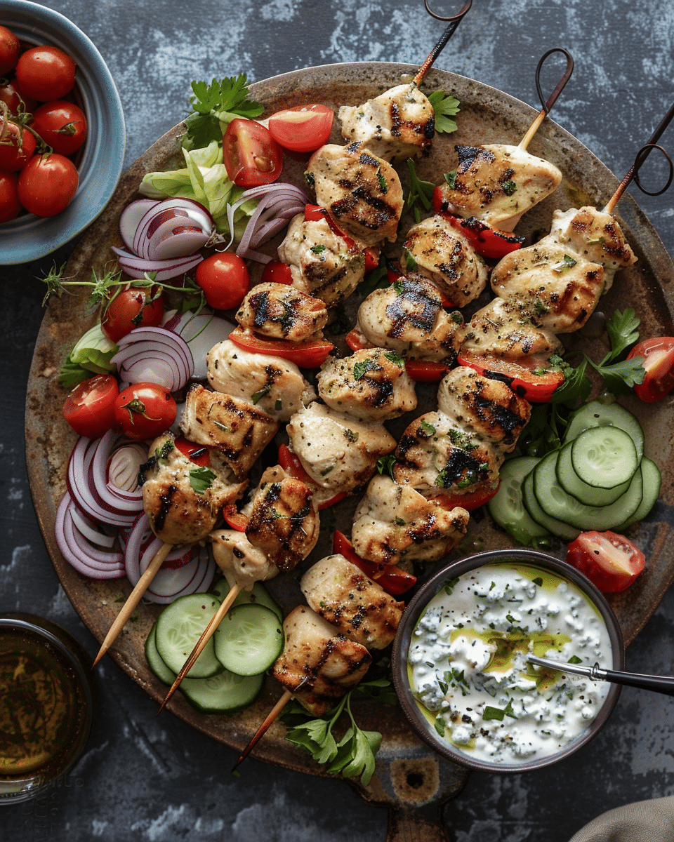 Juicy, herb-marinated chicken skewers inspired by classic Greek street food, bursting with lemon, garlic, and oregano flavor. Perfect for serving with warm pita, fresh salad, and creamy tzatziki.