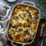 I store leftovers in an airtight container in the fridge for up to 4 days. To reheat, I use the oven at 350°F for about 10–15 minutes or microwave individual portions for 1–2 minutes until heated through. This casserole also freezes well—just wrap tightly and thaw overnight in the fridge before reheating.